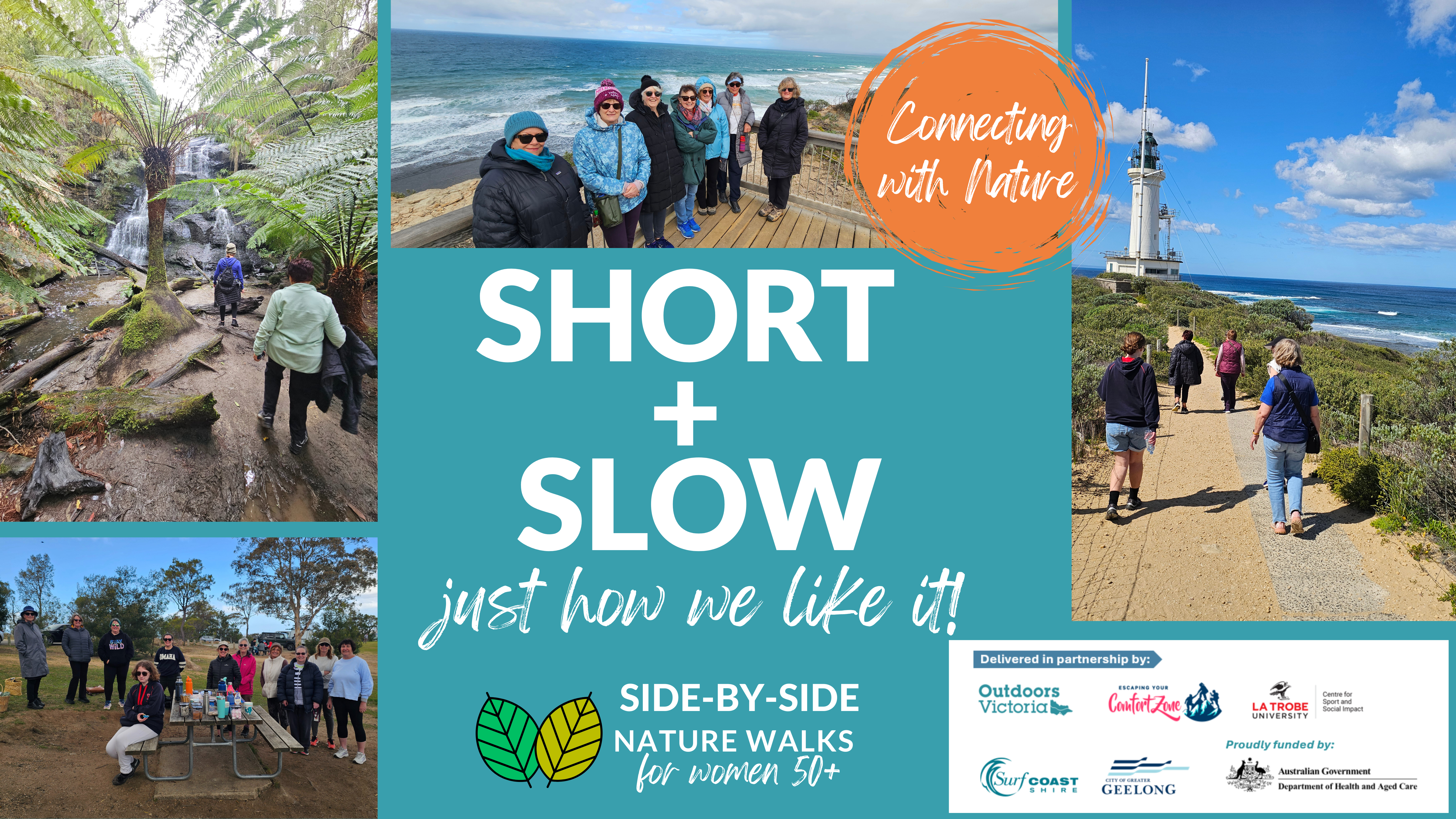 In Partnership with Escaping Your Comfort Zone, Outdoors Victoria, supported by La Trobe Centre for Sport and Social Impact, City of Greater Geelong and Surf Coast Shire, with funding support from the Department of Health and Ageing.