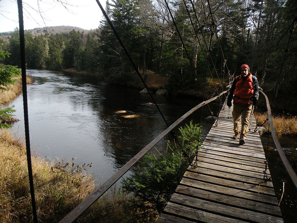 Join me for a weekend of backpacking at this wild place. We will follow the East Branch Sacandaga to a suspension bridge, and then climb into the hills to reach the ponds. A good and well-used trail leads most of the way, but we will probably have to bushwhack to find a good campsite.