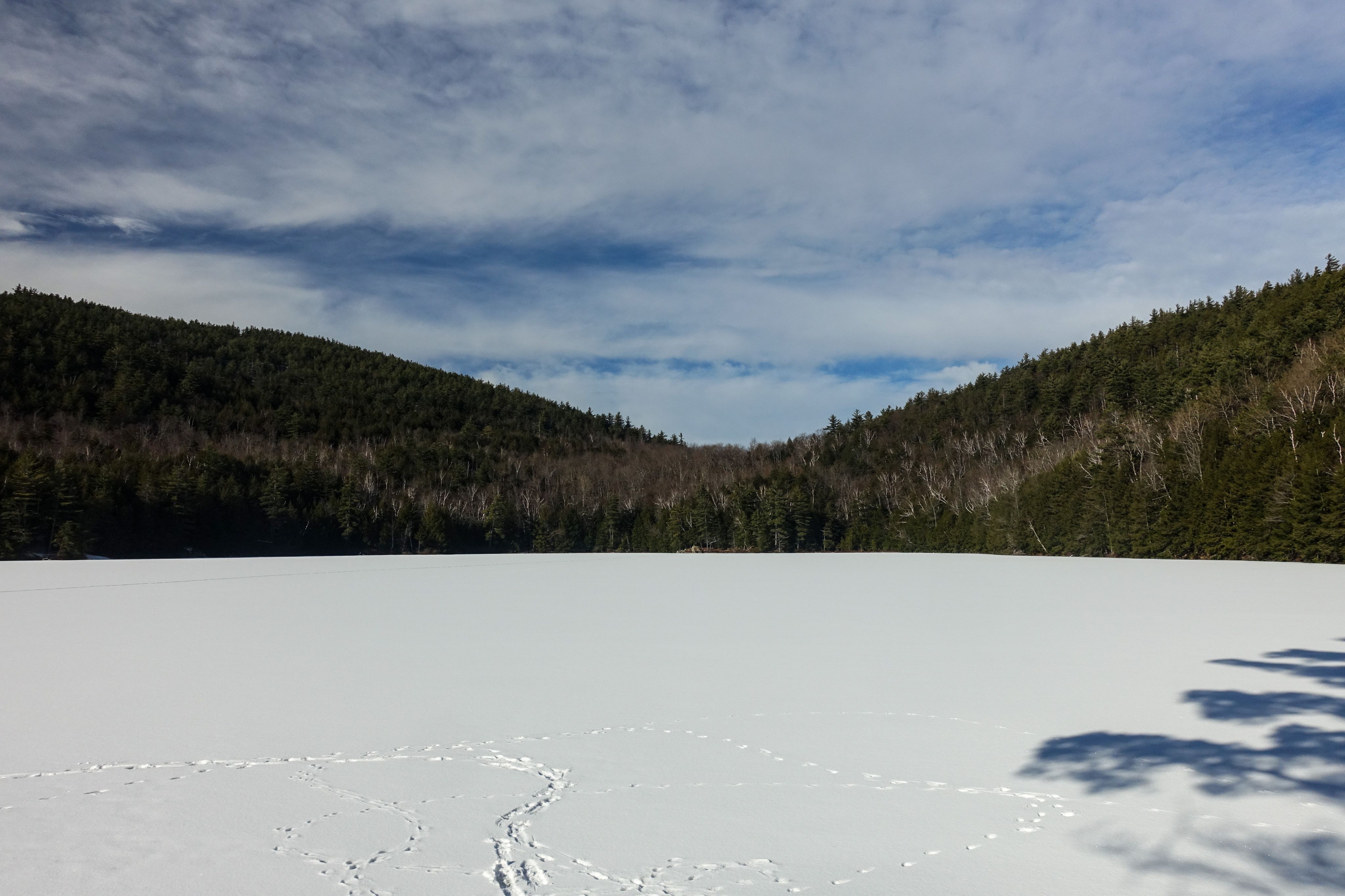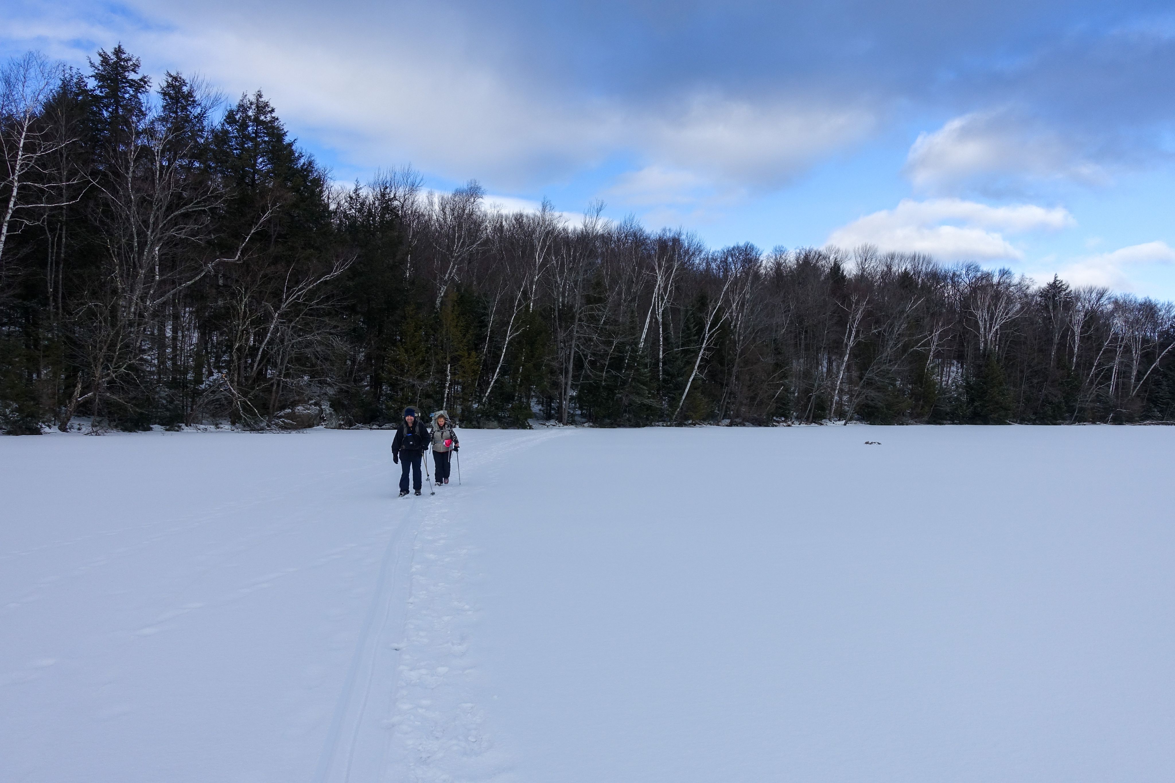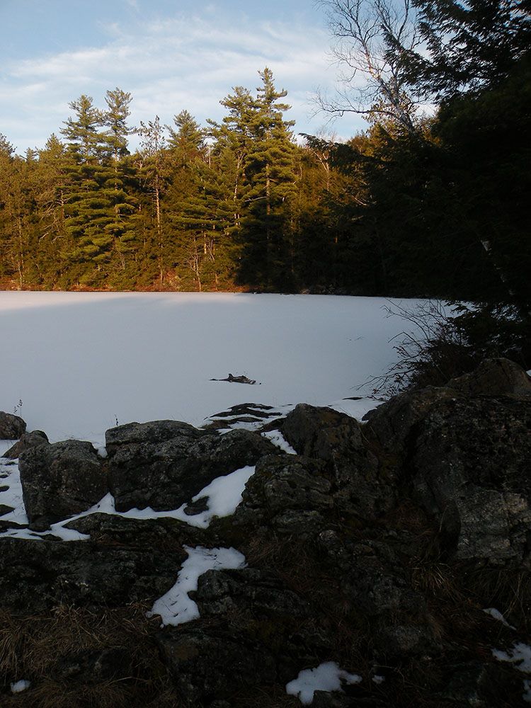 Hiking Distance: The distance to Clear Pond from the Putnam Pond Campground is about 1.1 miles, assuming that we walk across the frozen lake to get there. The distance to where we park will likely be a bit longer depending on where the plowing ends.