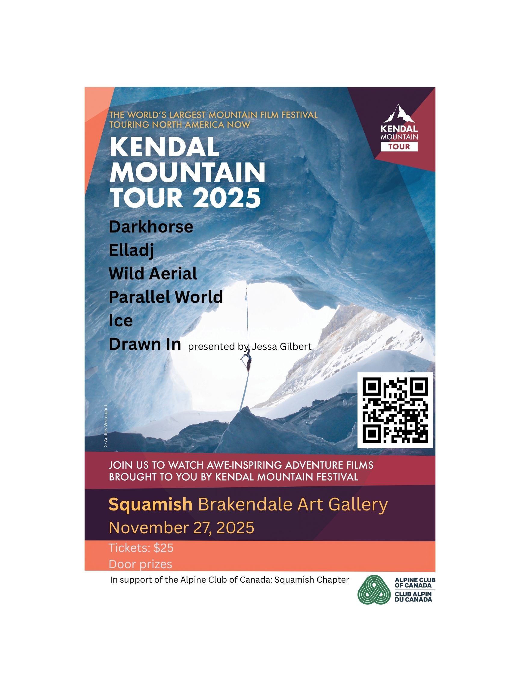 Any profits from fthis screening will go towards supporting ACC Squamish Chapter put on more volunteer run trips (Climbing, Scrambling, Mountaineering, Backcountry Skiing). We are passionate about fostering a sense of community, inspiring adventure, and promoting responsible mountain travel.
