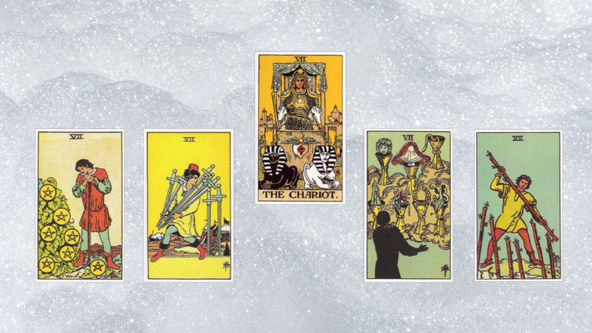 We begin the New Year by resuming our journey with the numbers of each suit. Join us as one of our our unofficial artists-in-residence, Majka, discusses the Sevens of the Swords, Wands, Cups, and Pentacles, as well as how each hearkens back to the Major Arcana Seven - the Chariot.